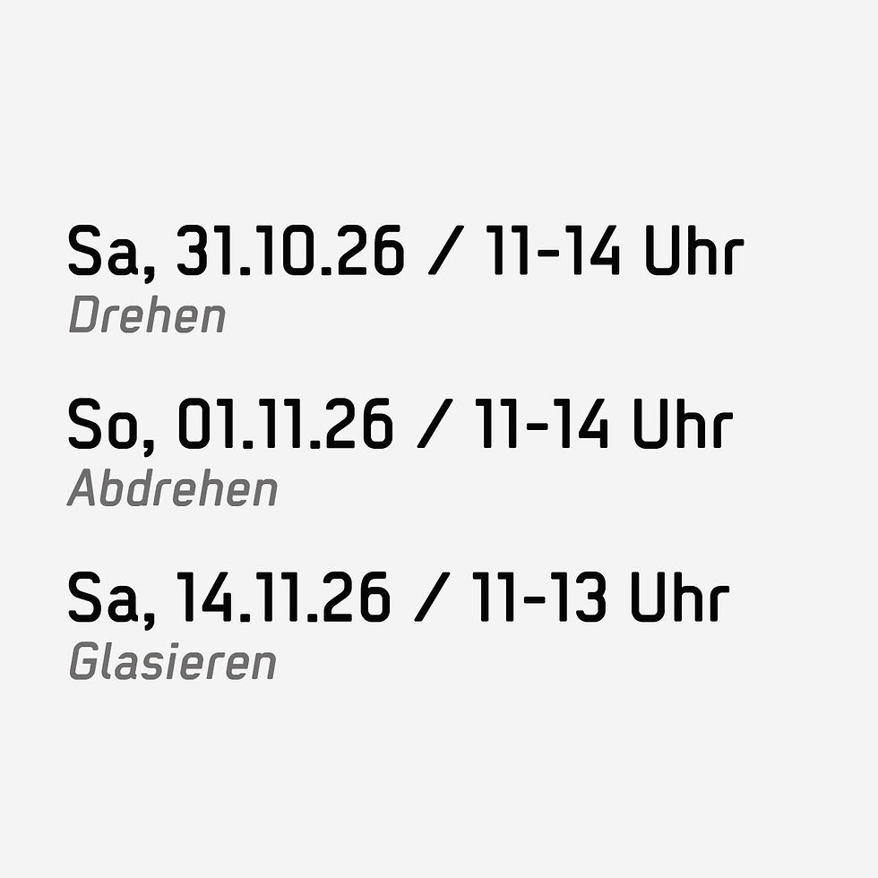 3 Wochen nach dem Kurs sind deine spülmaschinenfesten Gefäße abholbereit.