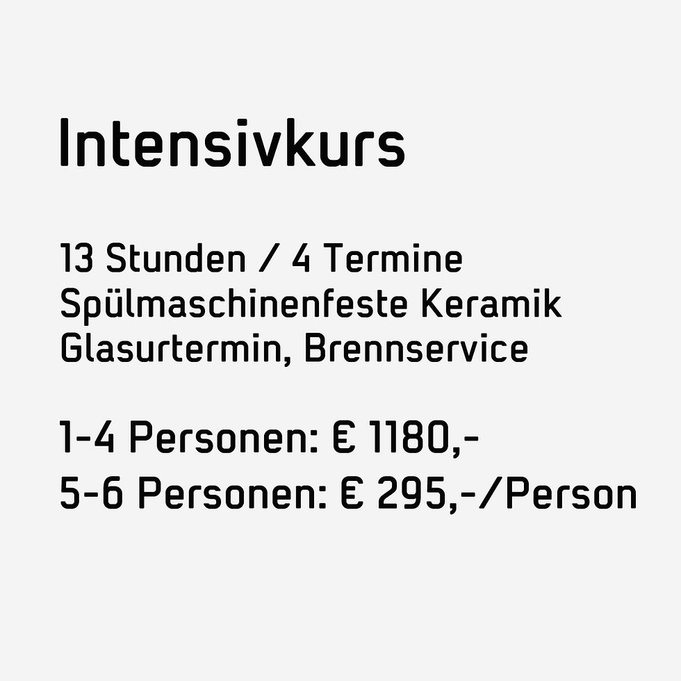 Material pro Kilo (Tonmasse nass), fertige, spülmaschinenfeste Keramik.